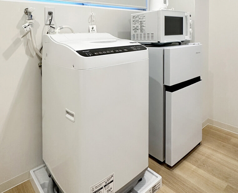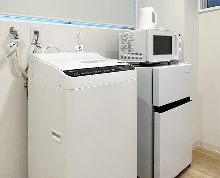 長期滞在者も室内に洗濯機があるから安心。洗剤も自由にお使いいただけます。着替えを減らして身軽に旅をお楽しみください。